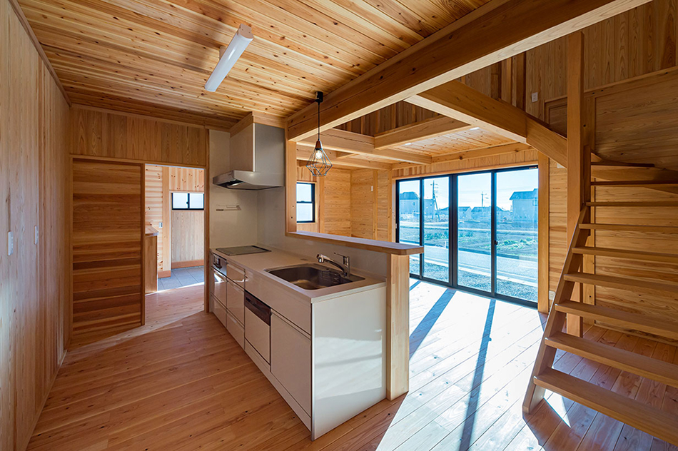 低温乾燥の自社製材から生まれる良質な国産無垢材は、家の中で住まう人と同じようにいつも呼吸しています。 湿気が多い時期には、木が湿気を吸い込み、乾燥する時期には、吸い込んだ湿気を木が吐き出します。 だから石山は、四季を通して快適に暮らせる国産無垢材の家づくりにこだわり続けています。